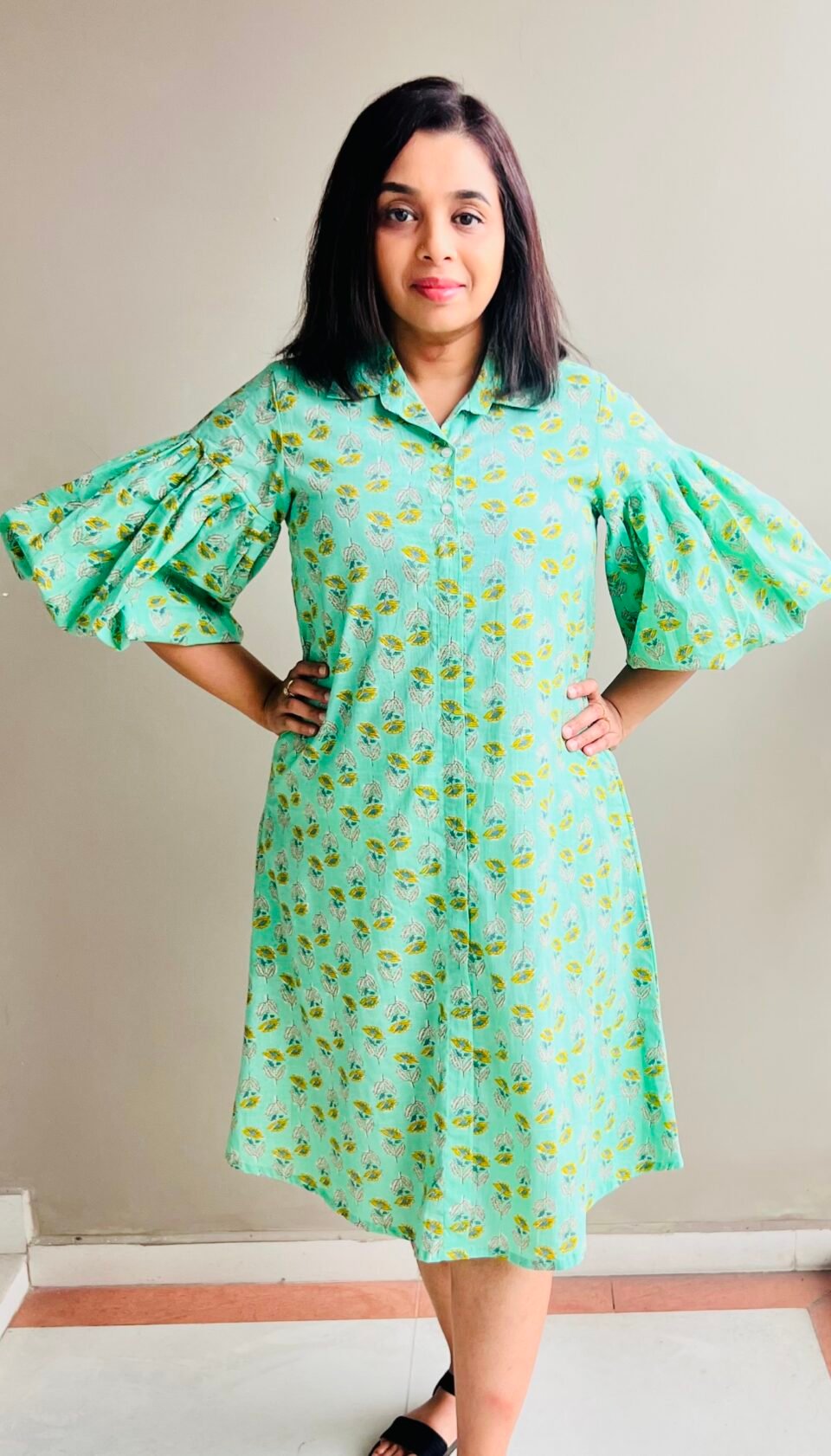Sage Green Block Print Dress