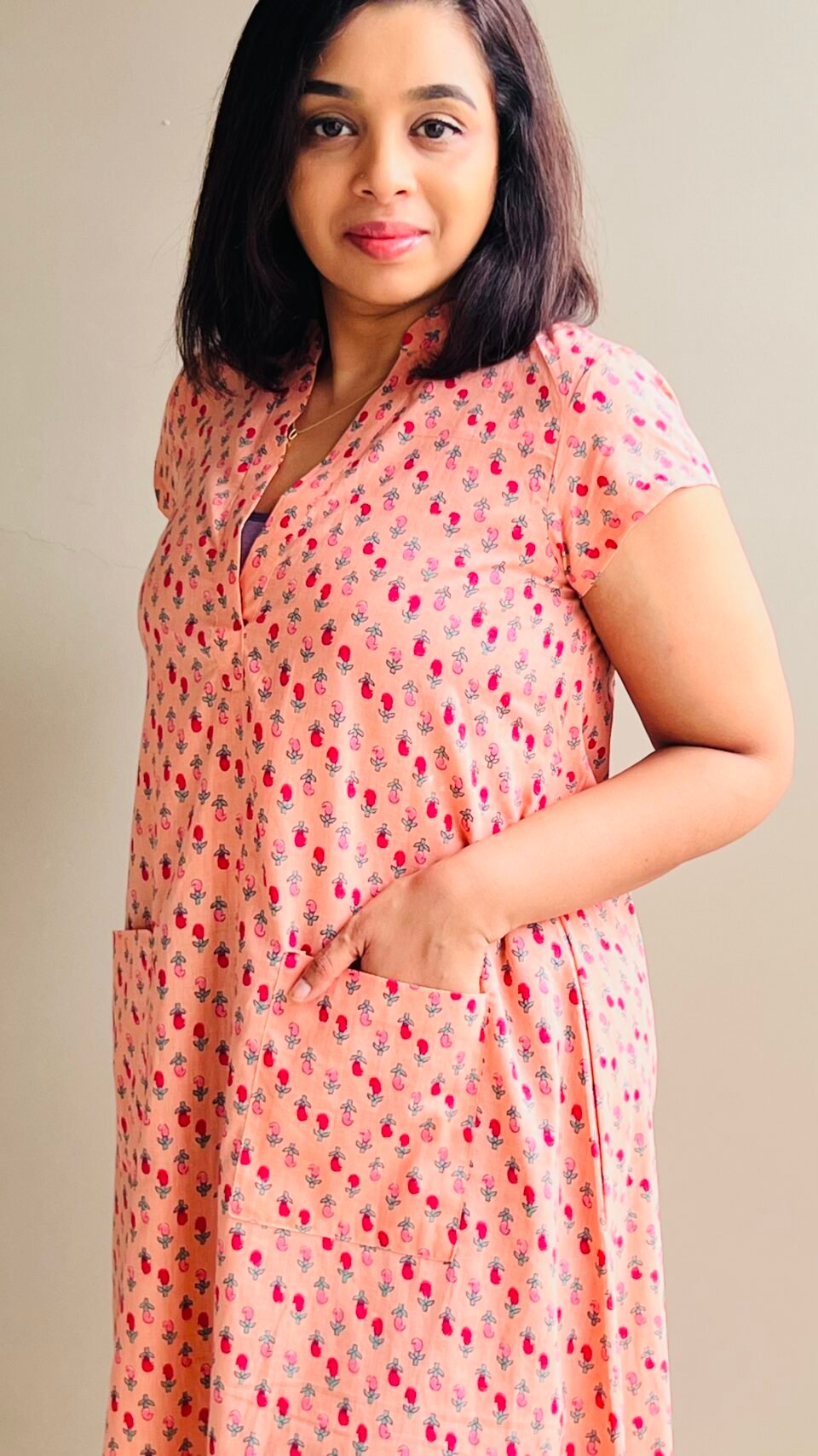 Peach Front Pocket Dress