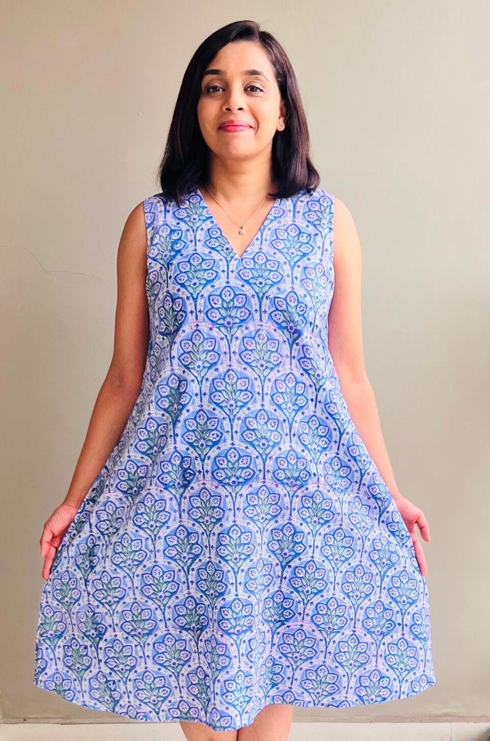 Allover Blue Print Dress