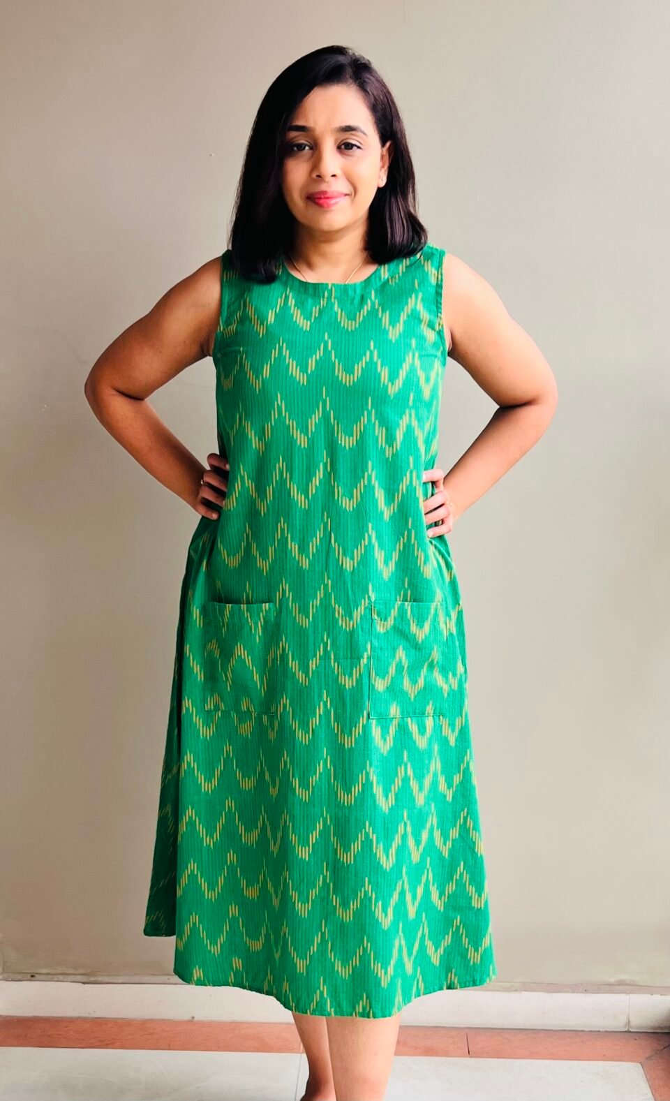 Front Pocket Ikat Dress